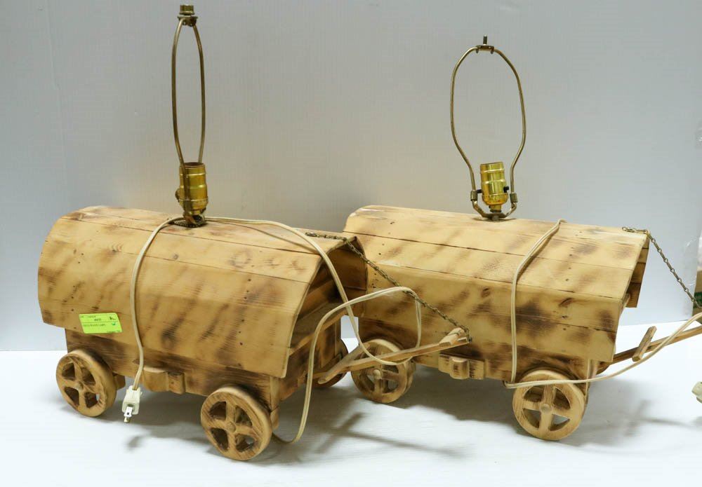 PAIR OF HOMEMADE WOODEN CHUCKWAGON LAMPS