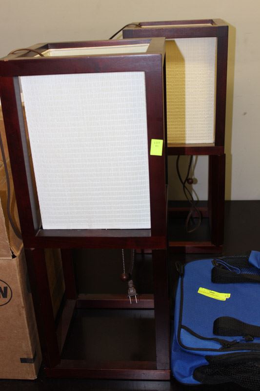 PAIR OF JAPANESE STYLE WOOD FRAMED LAMPS