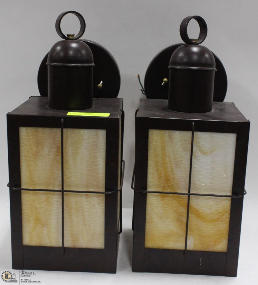 PAIR OF LARGE STAINGLASS LIKE PATIO/DECK LIGHTS