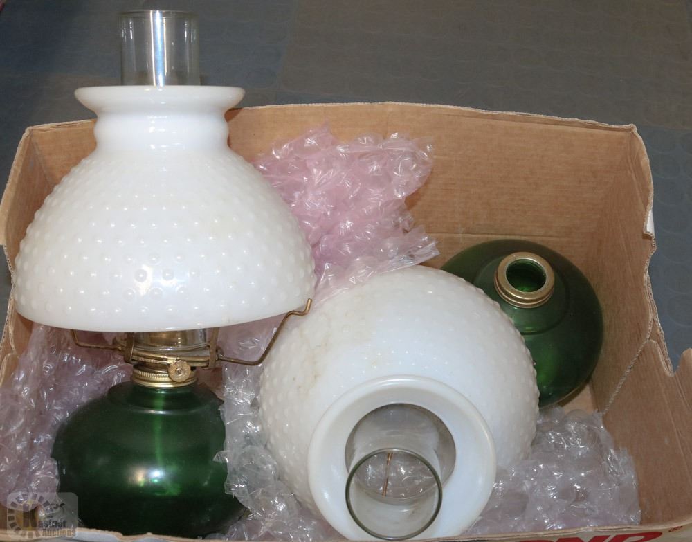 ONE SHADE IS CHIPPED AND ONE STILL HAS SOME OIL