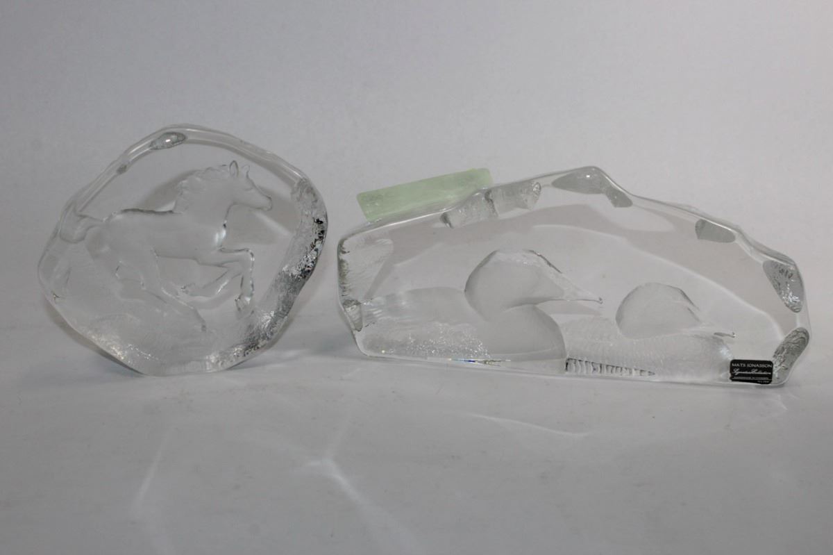 PAIR OF LEAD CRYSTAL DUCK AND STALLION ORNAMENTS