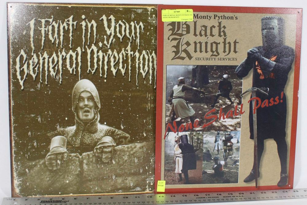 PAIR OF METAL MONTY PYTHON TIN SIGNS FROM MONTY