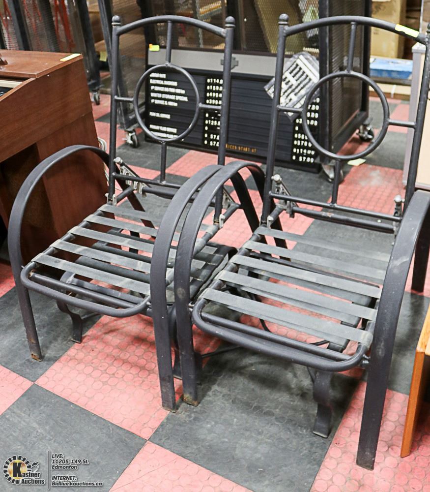 PAIR OF METAL RECLINING PATIO CHAIRS & FOOTSTOOLS