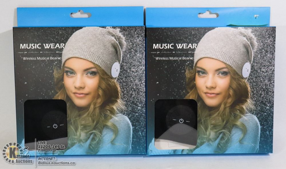 PAIR OF MUSIC WEAR WIRELESS MUSICAL BEANIES BLACK