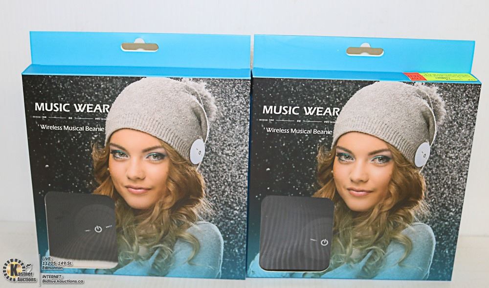 PAIR OF MUSIC WEAR WIRELESS MUSICAL BEANIES BLACK
