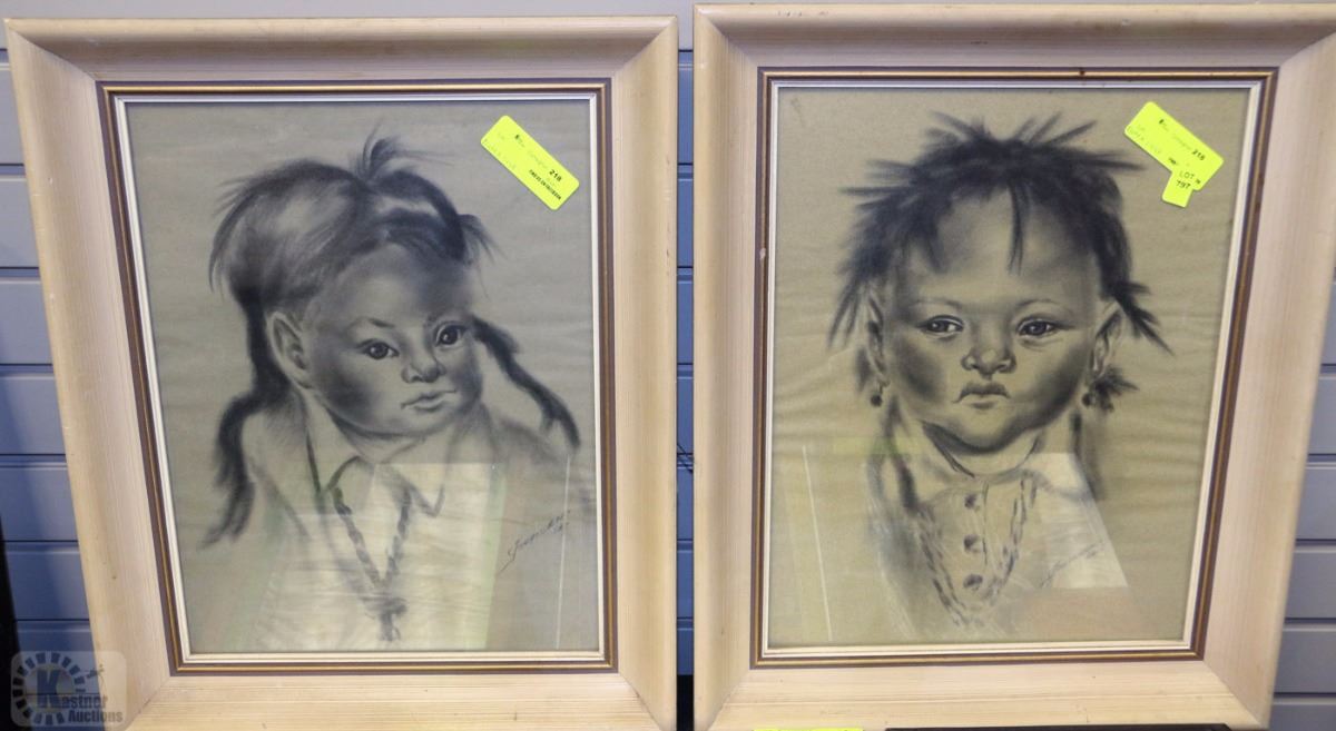 PAIR OF NATIVE FRAMED PICTURES DATED 1958