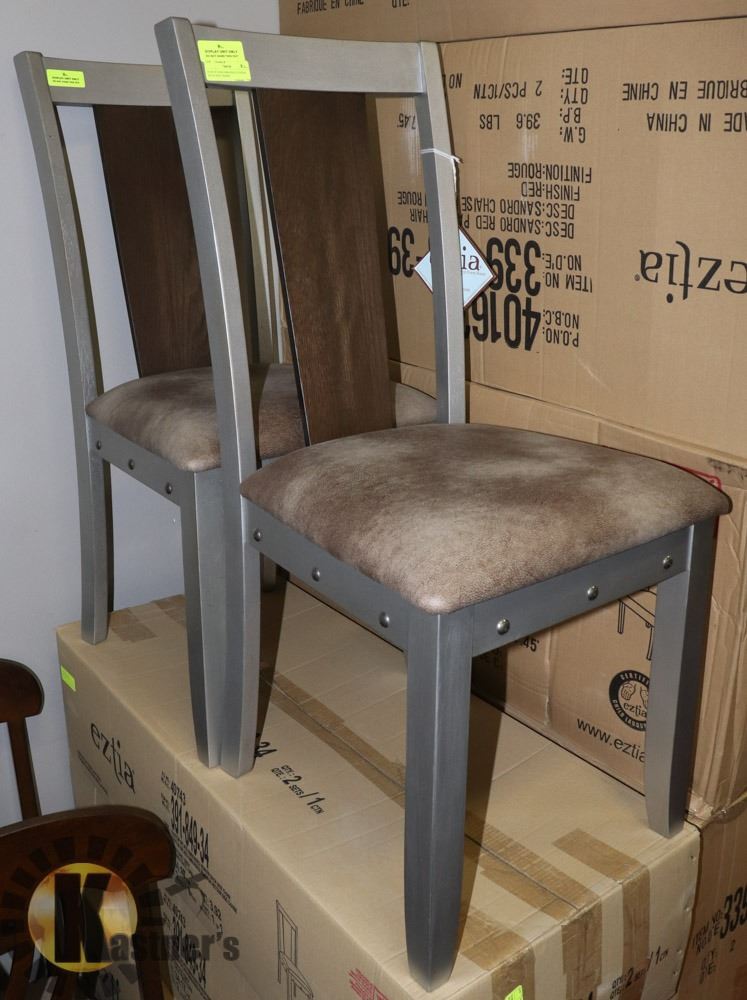 PAIR OF NEW EMBOSSED VENEER BACK SIDE CHAIRS,