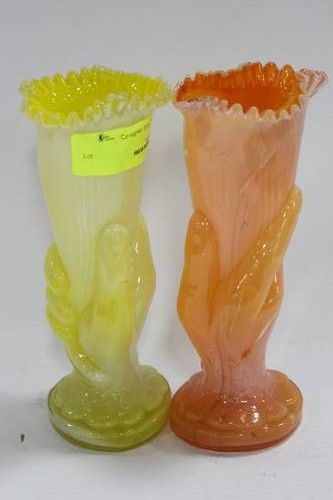 PAIR OF ORANGE AND YELLOW HAND VASES