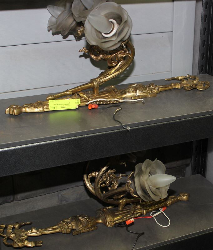 PAIR OF ORNATE 3 LIGHT WALL SCONCES