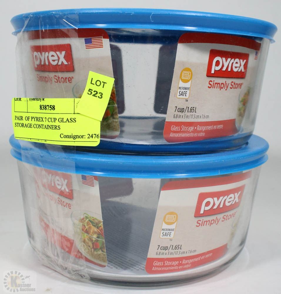 PAIR OF PYREX 7 CUP GLASS STORAGE CONTAINERS