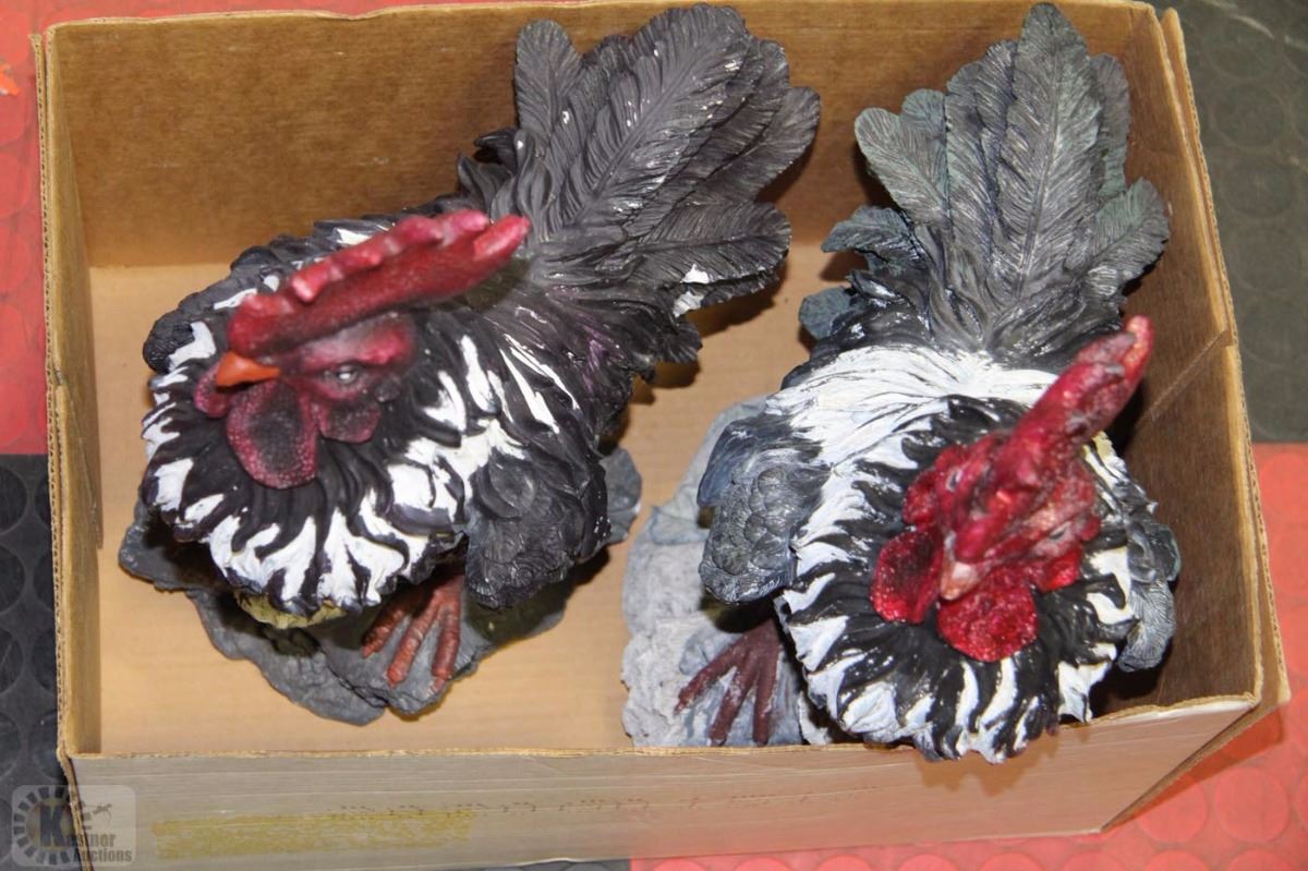 PAIR OF ROOSTER GARDEN ORNAMENTS