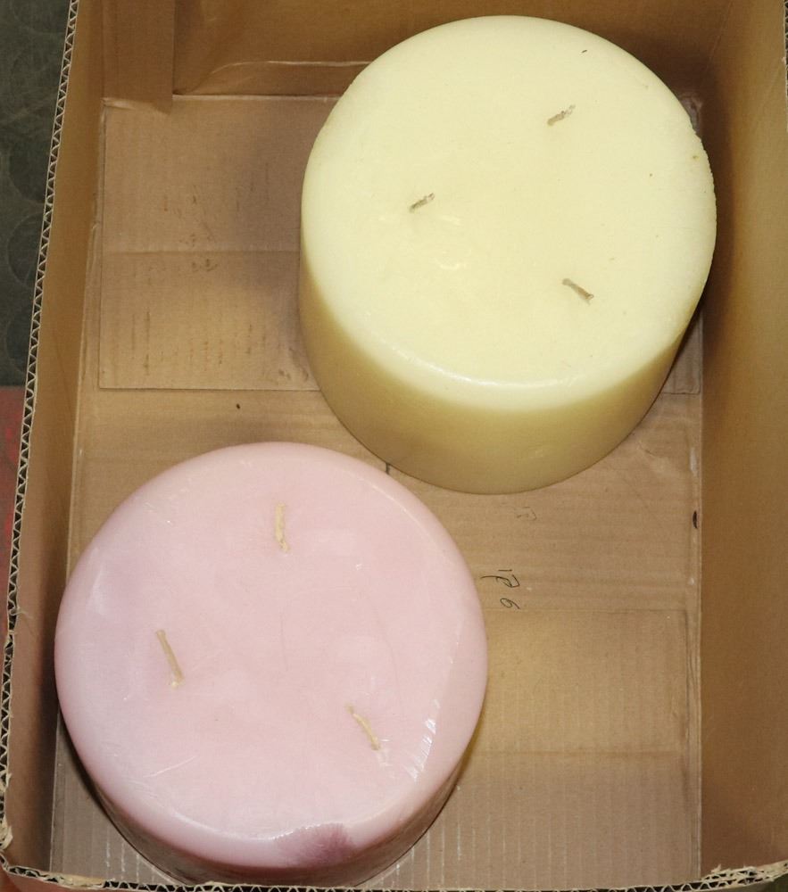 PAIR OF SCENTED PARTYLITE 3 WICK CANDLES, 6" X 5"