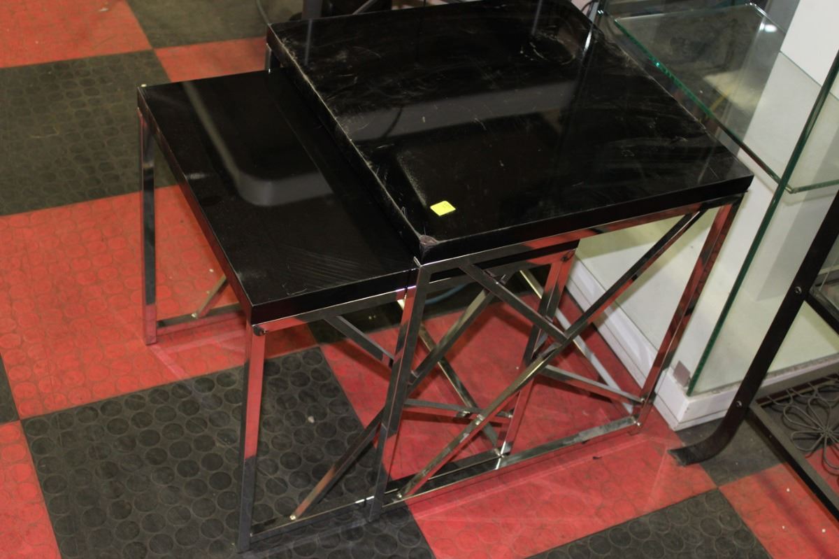PAIR OF SCRATCHED TOP NESTING TABLES