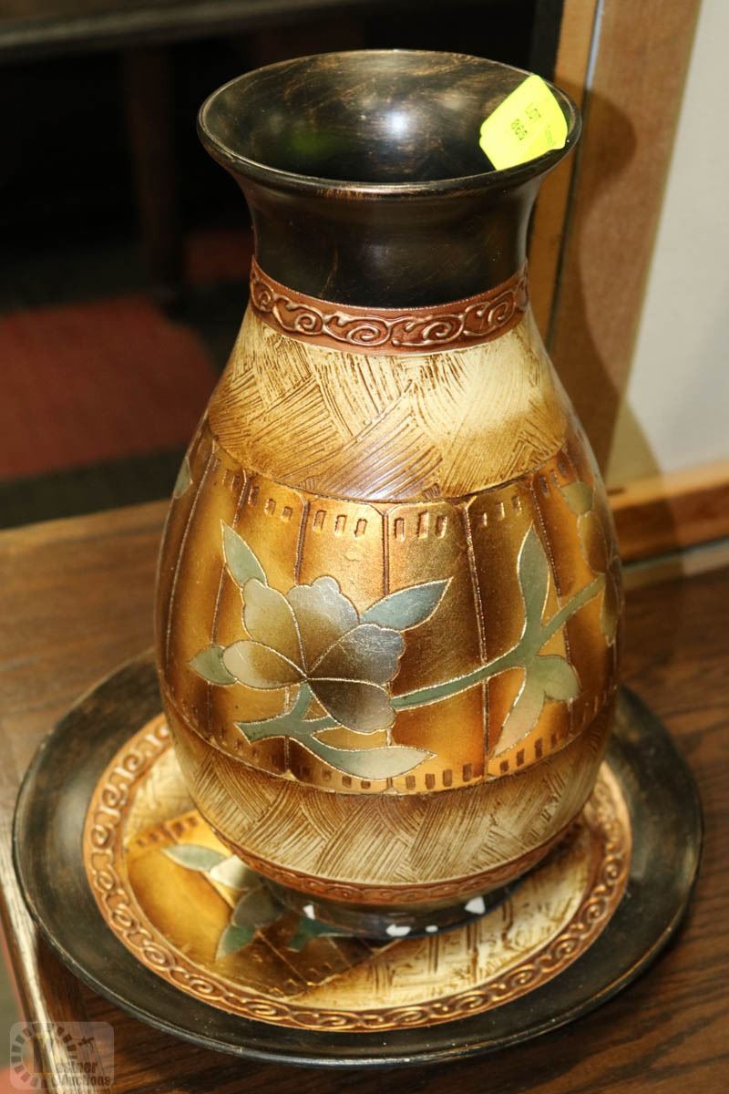 PAIR OF SHOWHOME HANDPAINTED STYLE VASE AND PLATE