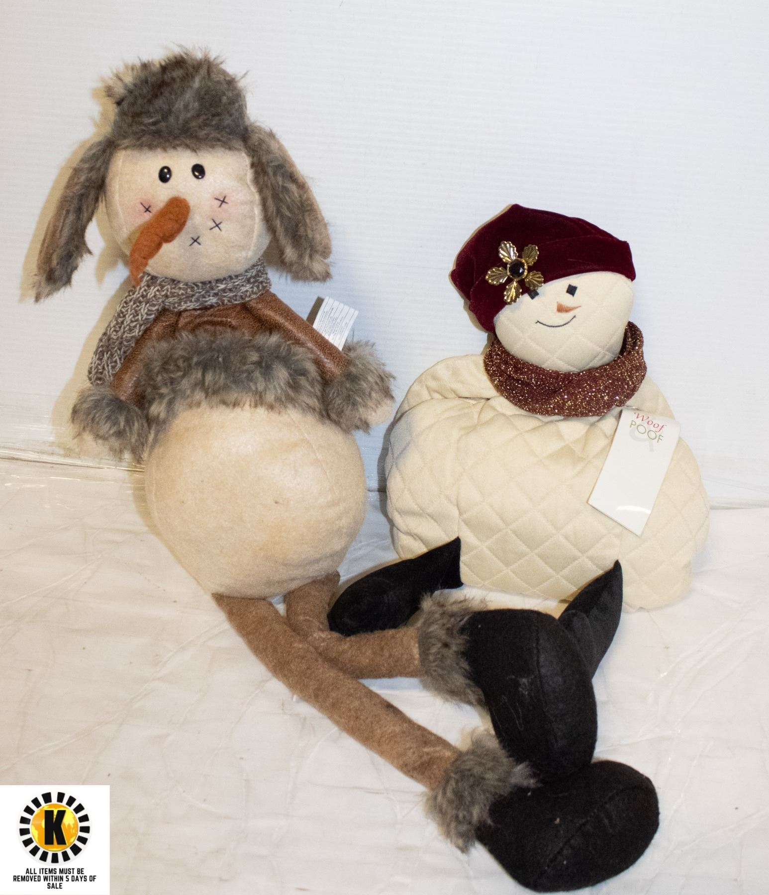 PAIR OF SITTING SNOWMEN