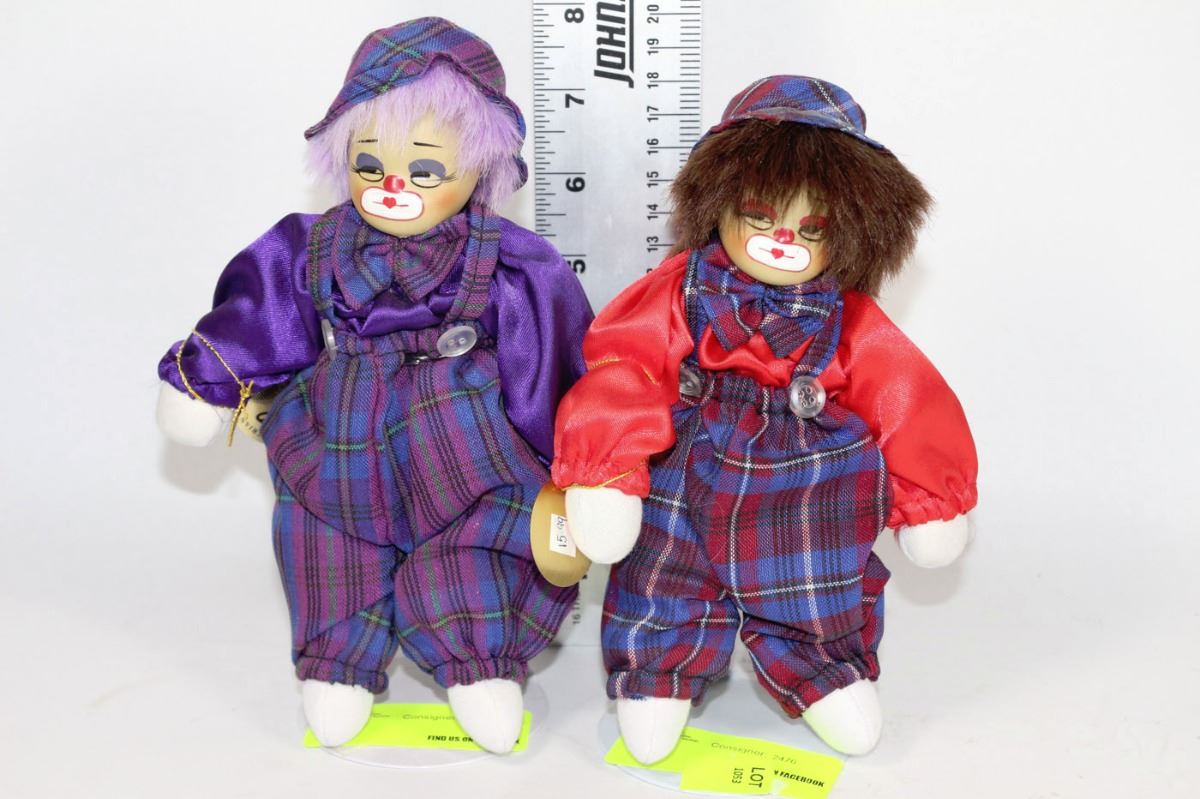 PAIR OF SMALL CLOWN DOLL ORNAMENTS