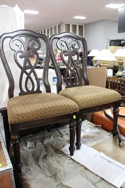 PAIR OF SOLID WOOD FABRIC SIDECHAIRS