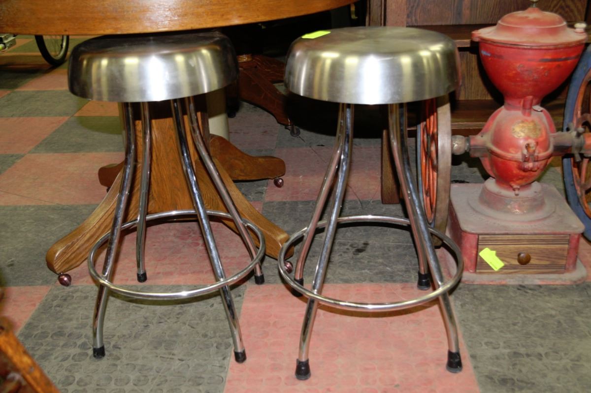 PAIR OF STAINLESS STEEL SHOP STOOLS