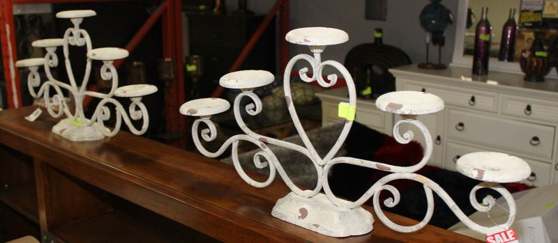 PAIR OF STONE LOOK 5 CANDLE CANDLE HOLDERS
