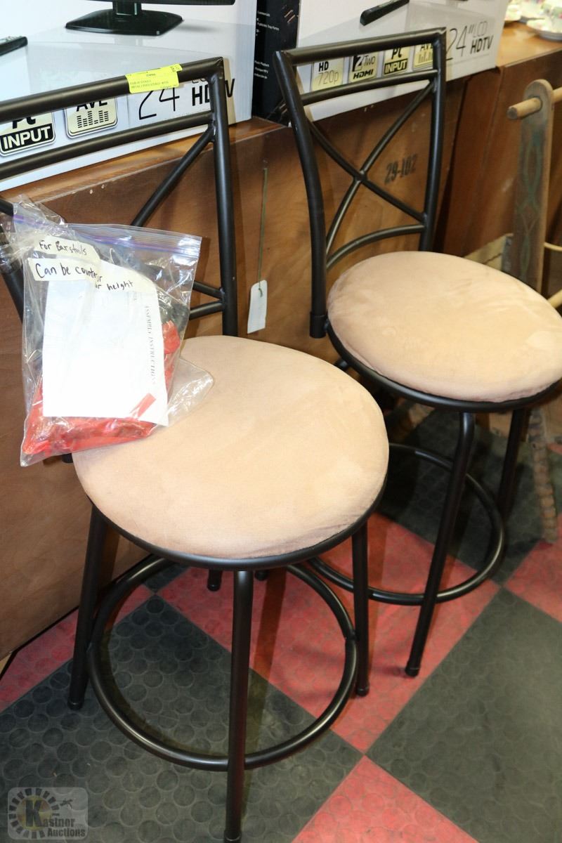 SWIVEL AND HAS HARDWARE TO ADJUST TO COUNTER OR BAR HEIGHT