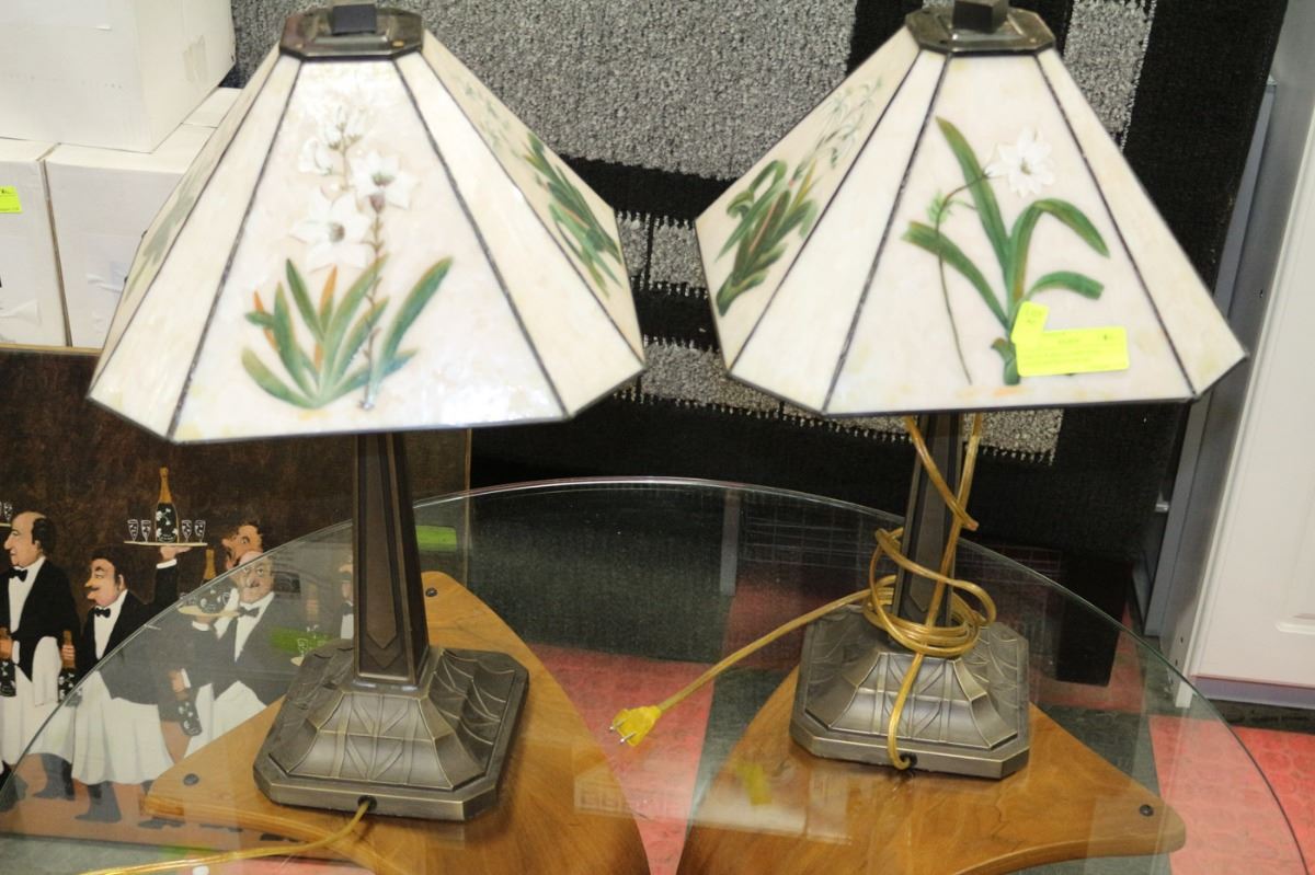 PAIR OF TABLE LAMPS WITH HANDPAINTED FLOWERS