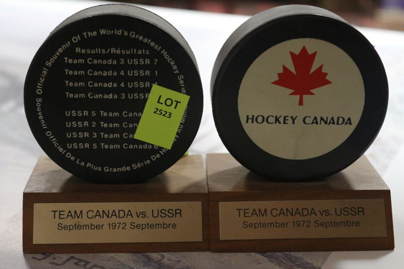 PAIR OF TEAM CANADA VS. USSR HOCKEY PUCK