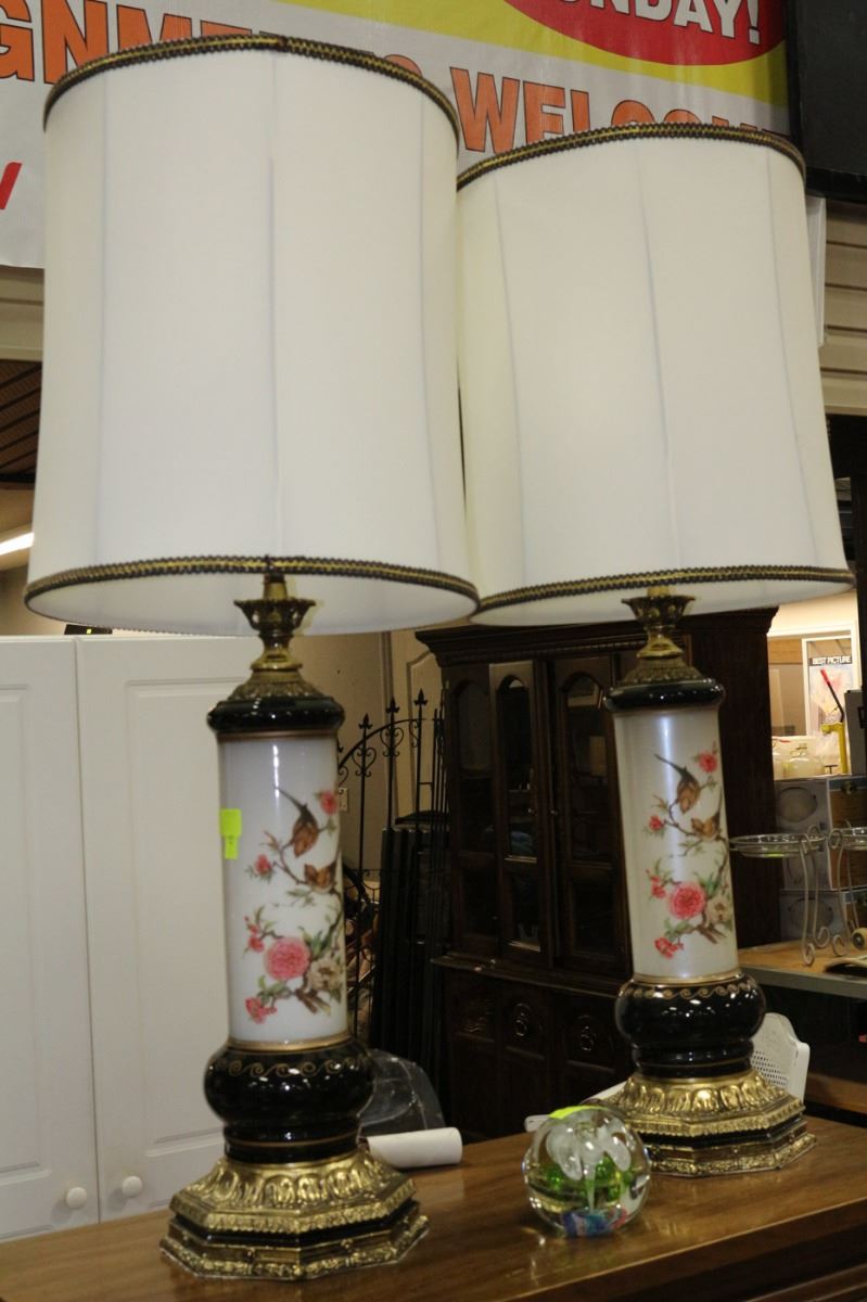 PAIR OF VINTAGE BRASS AND GLASS BIRD LAMPS