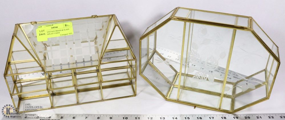 PAIR OF VINTAGE BRASS & GLASS CURIO DISPLAY CASES