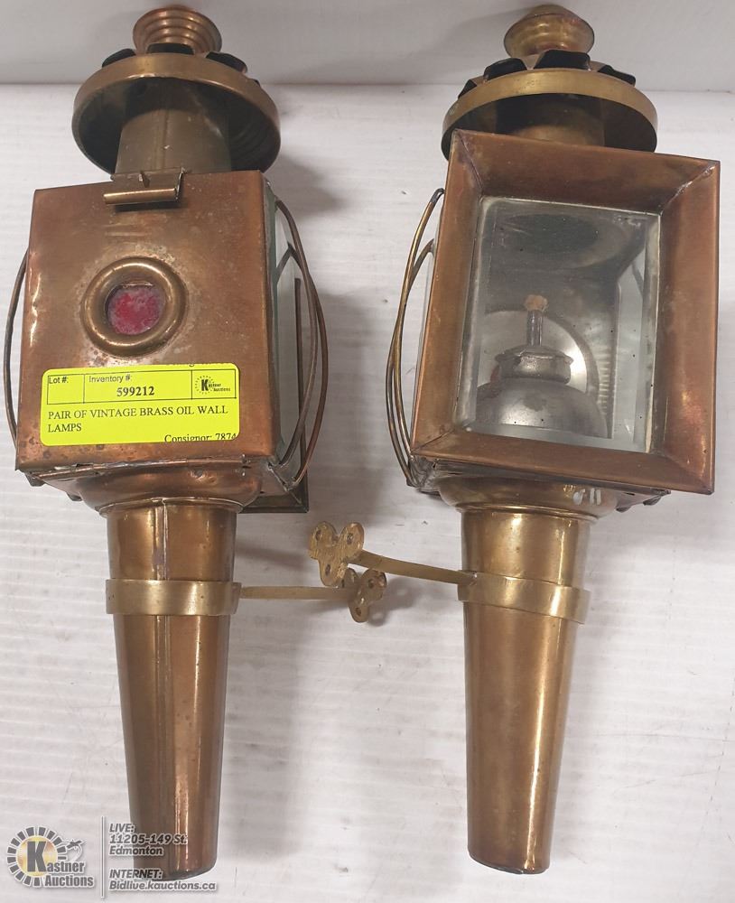 PAIR OF VINTAGE BRASS OIL WALL LAMPS