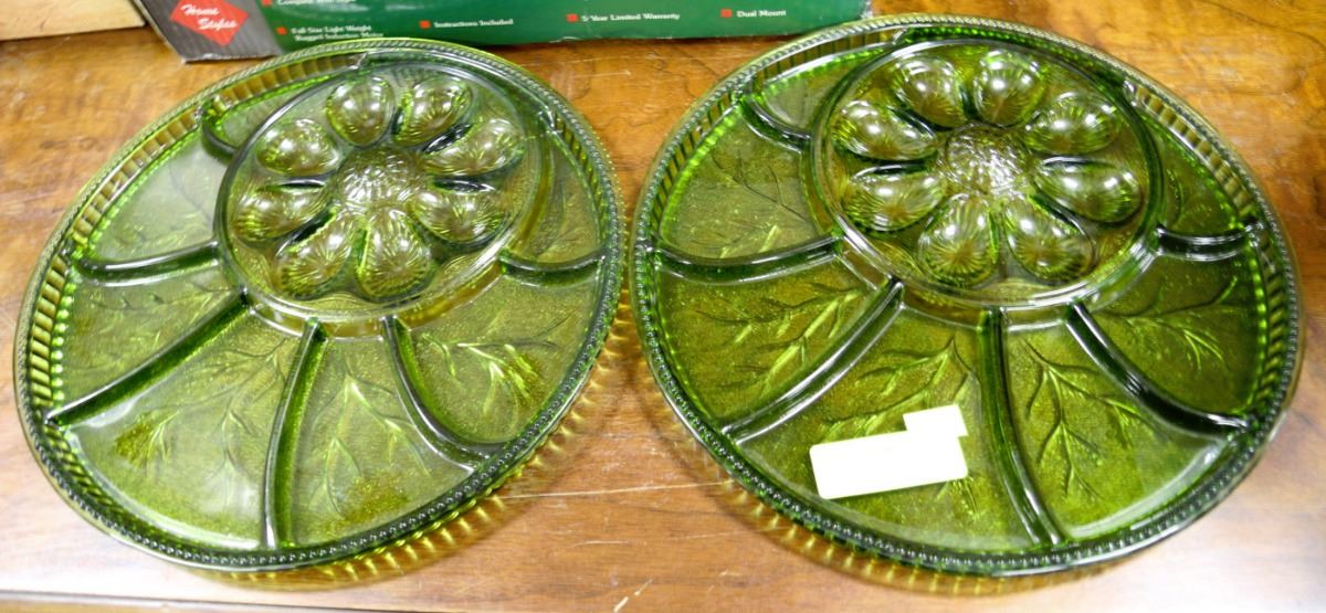 PAIR OF VINTAGE GREEN DEVILED EGG TRAYS