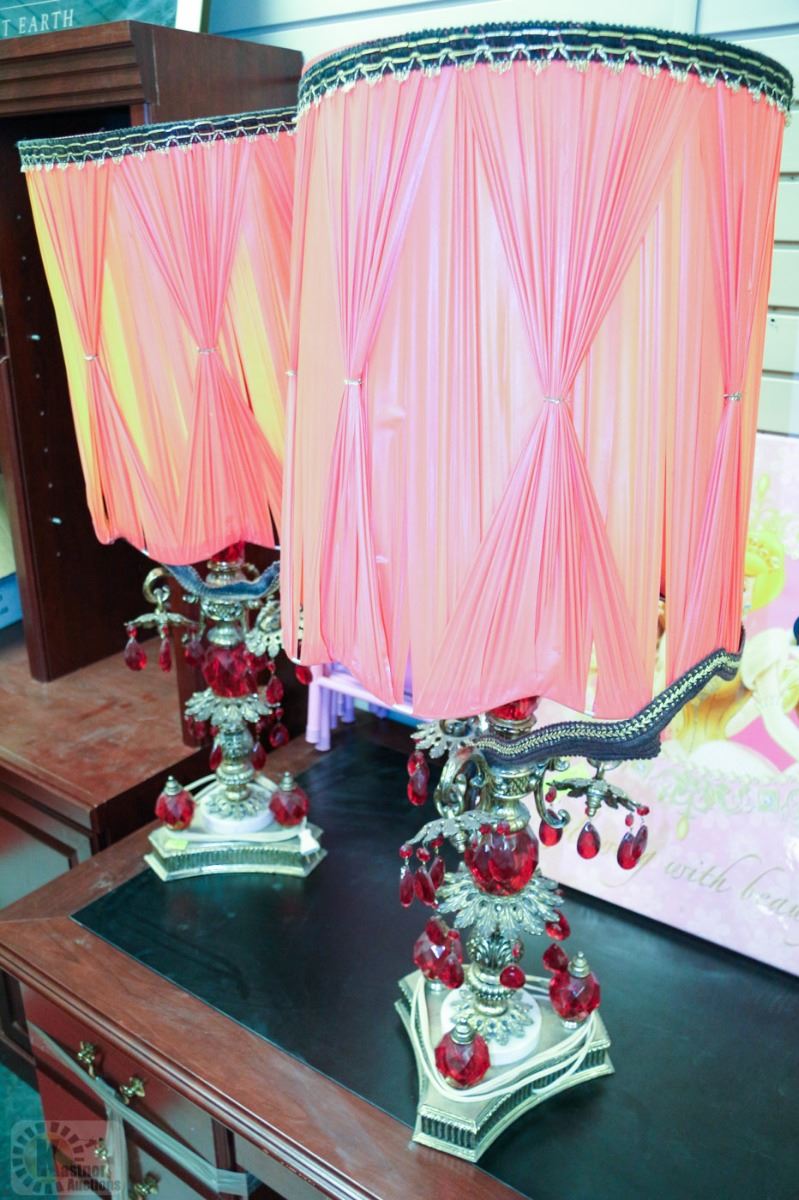 PAIR OF VINTAGE LAMPS. SHADE IS DAMAGED