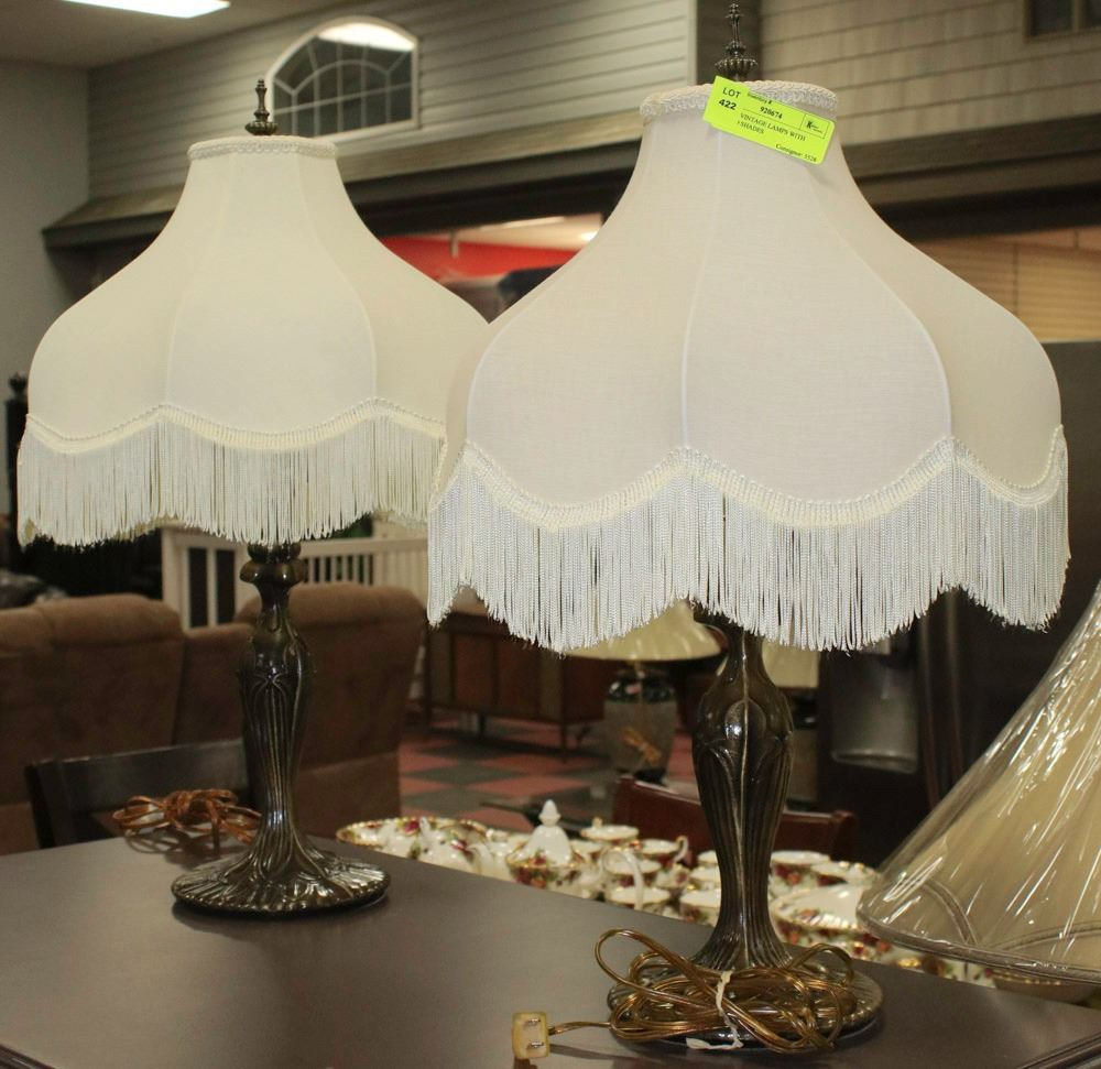 PAIR OF VINTAGE LAMPS WITH FRINGED SHADES