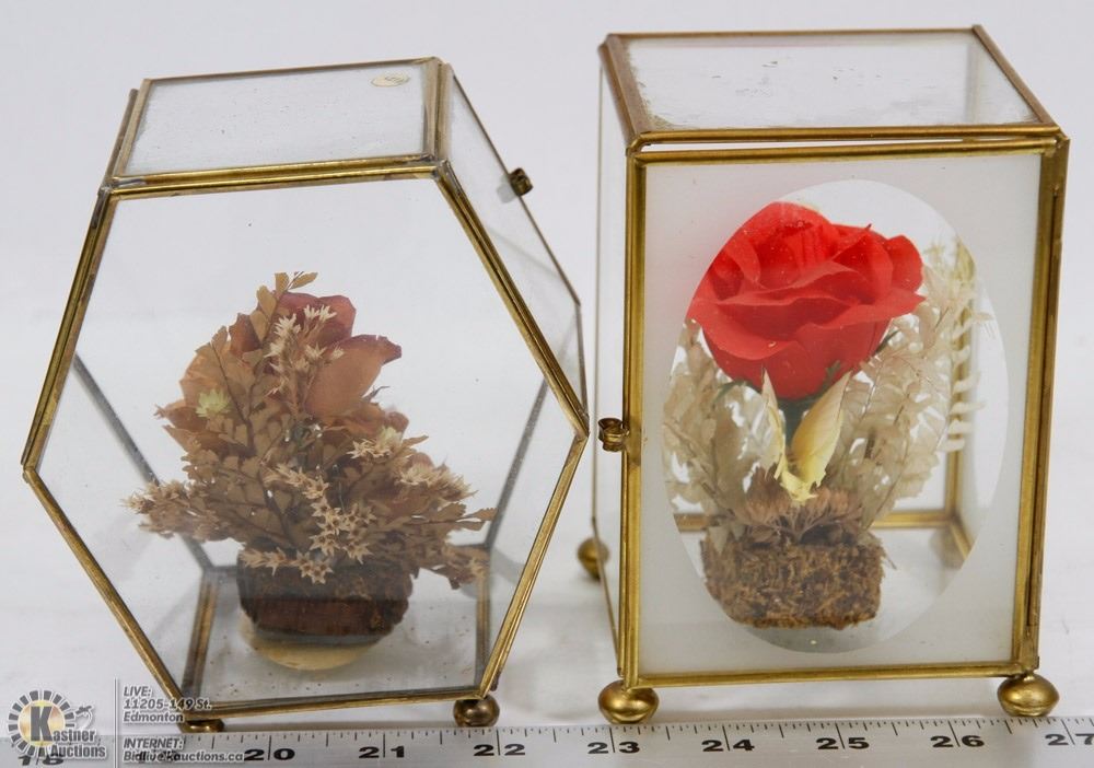 2 GLASS ENCASED FLOWER DISPLAYS, 1950'S