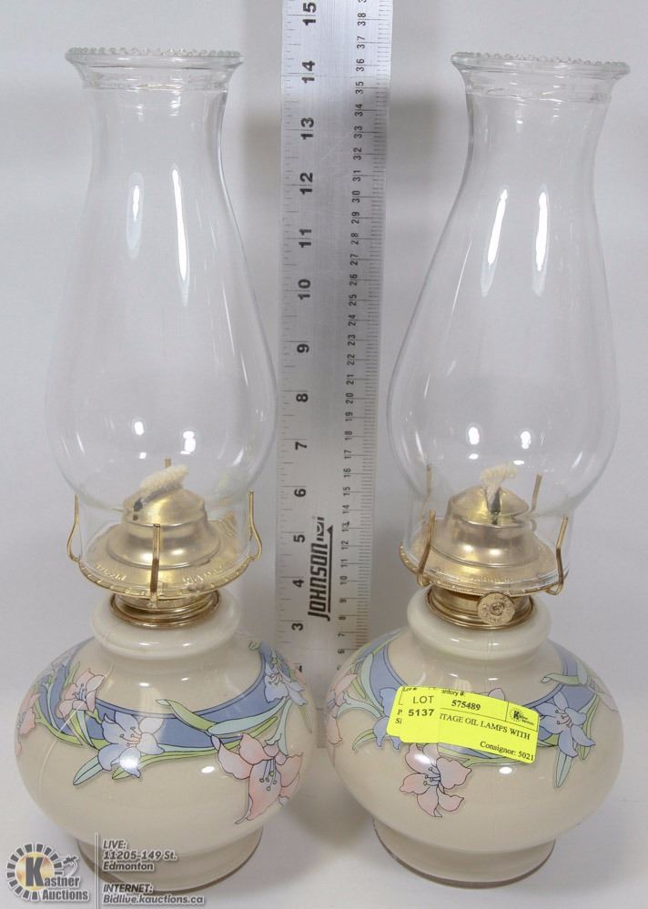 PAIR OF VINTAGE OIL LAMPS WITH SHADES.