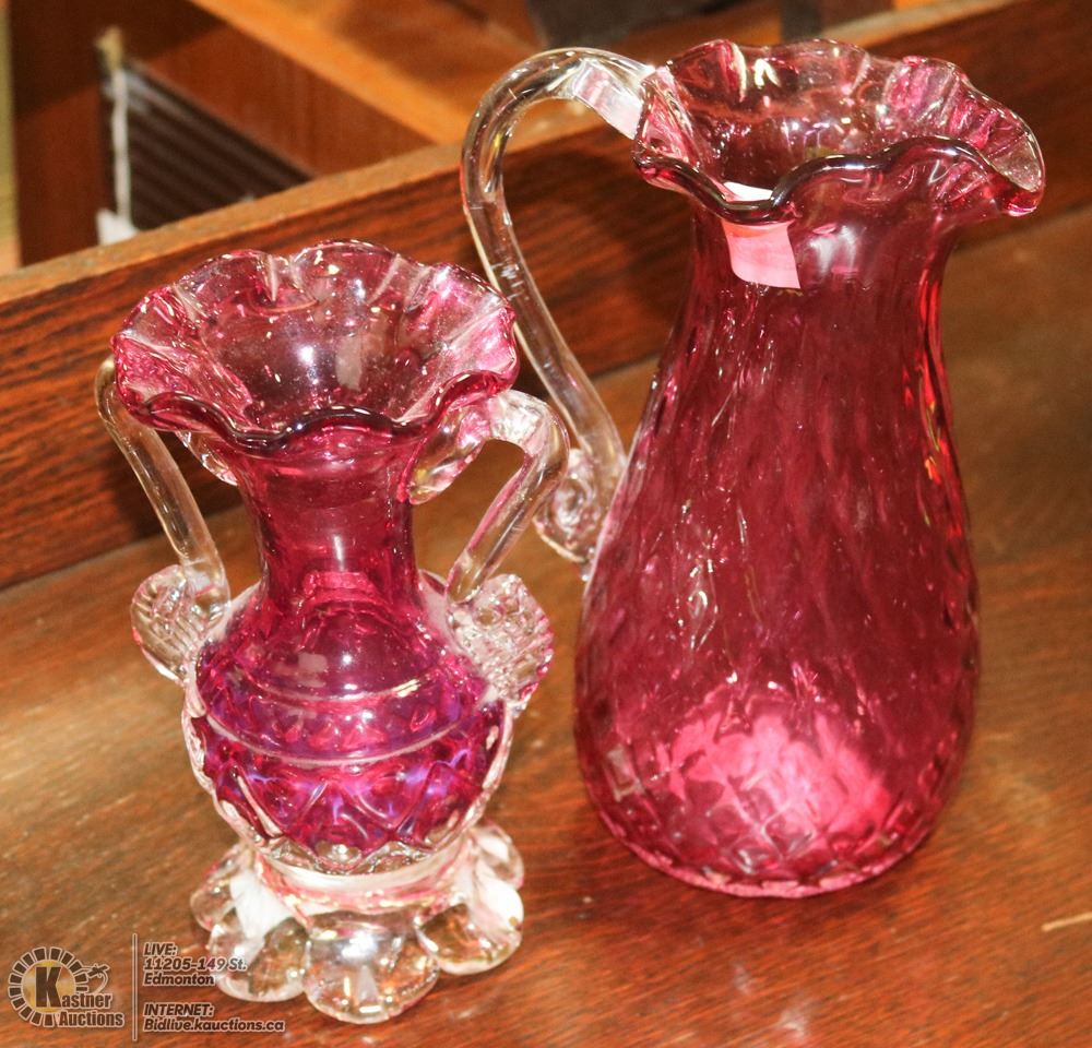 PAIR OF VINTAGE PINK GLASS PITCHERS