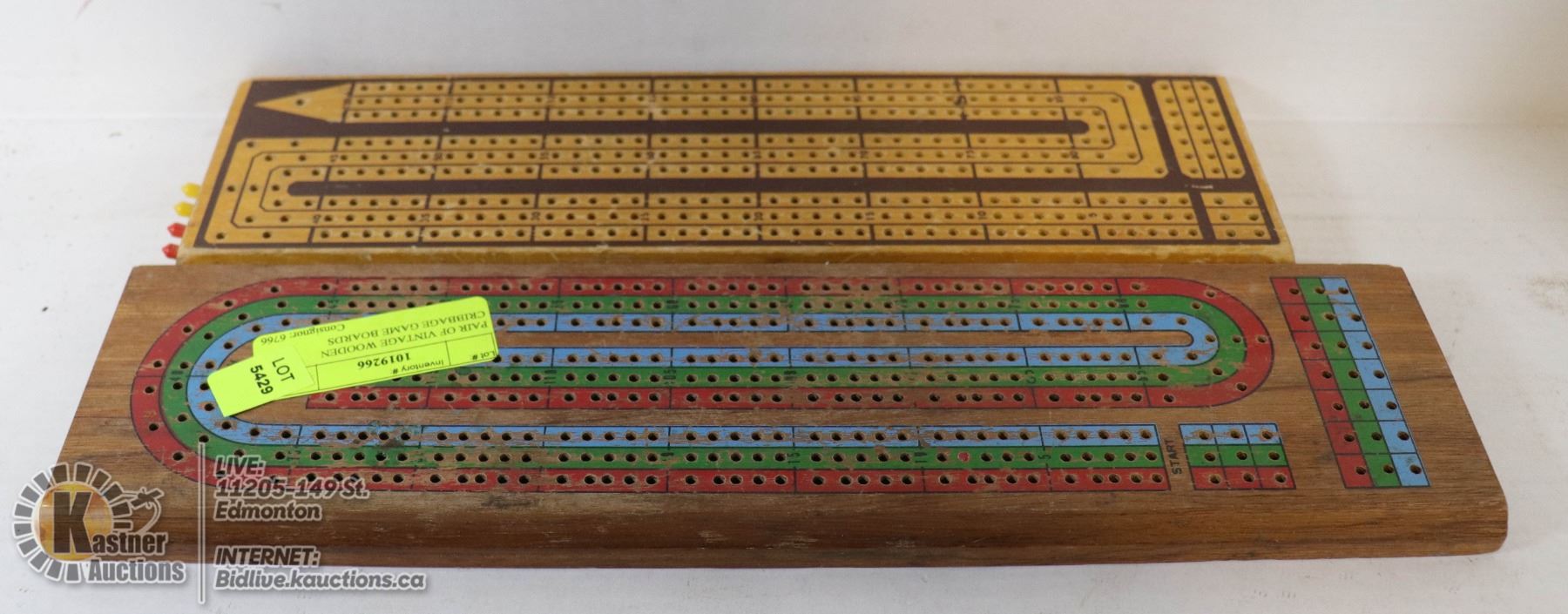 PAIR OF VINTAGE WOODEN CRIBBAGE GAME BOARDS
