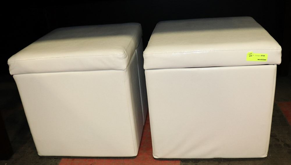 PAIR OF WHITE LEATHERETTE STORAGE STOOLS