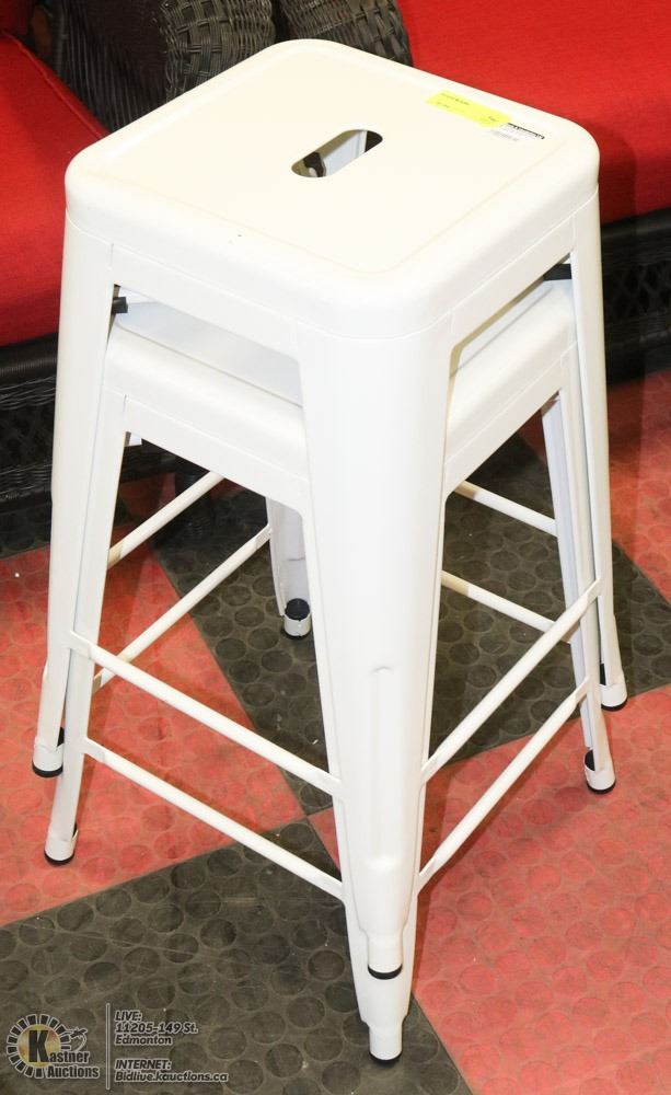 PAIR OF WHITE METAL STACKABLE BAR STOOLS
