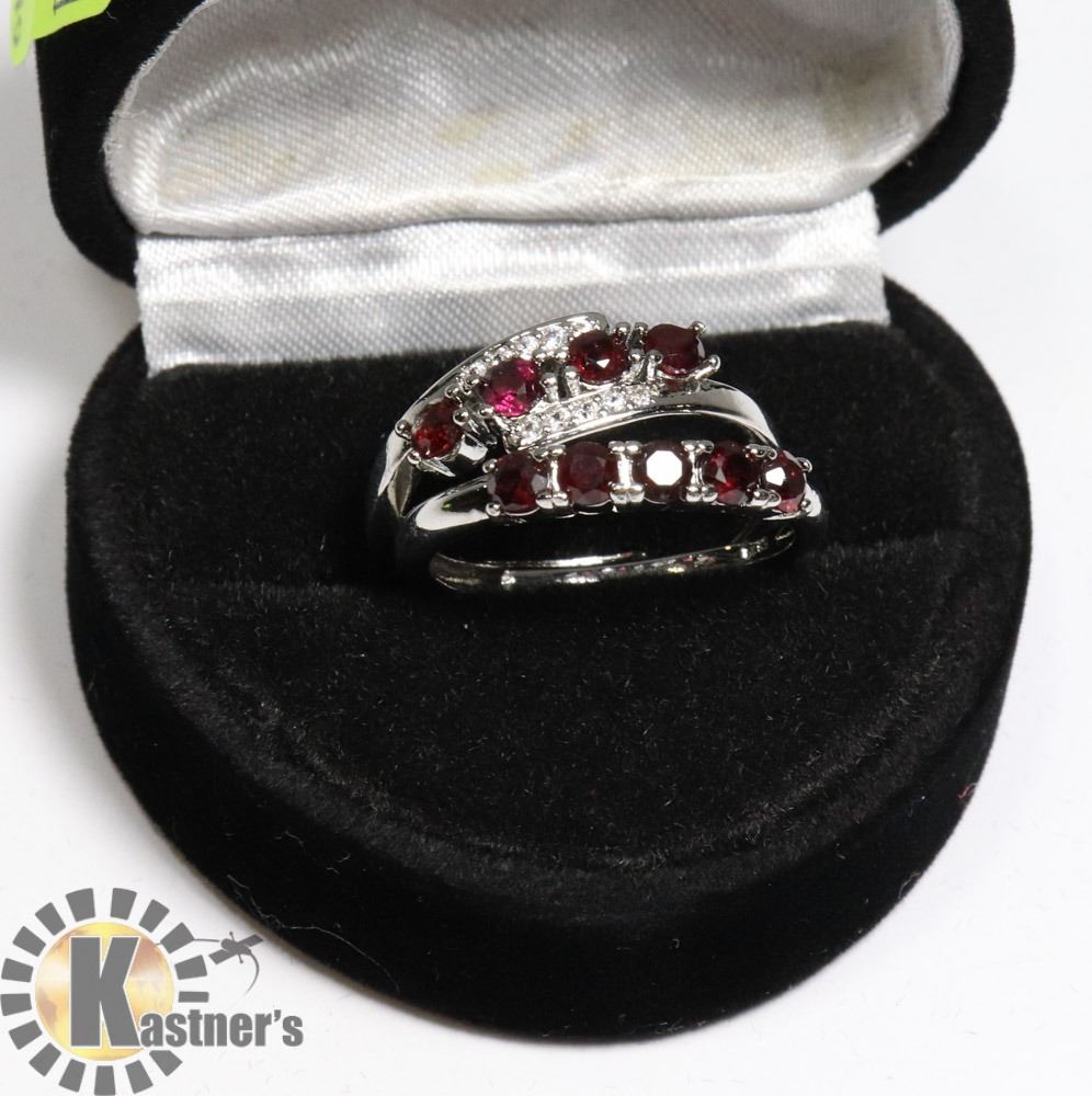 PAIR OF WOMEN NATURAL GARNET RING -ADJUSTABLE SIZE