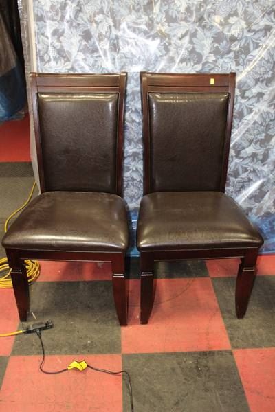 PAIR OF WOOD AND BLACK LEATHERETTE SIDECHAIRS