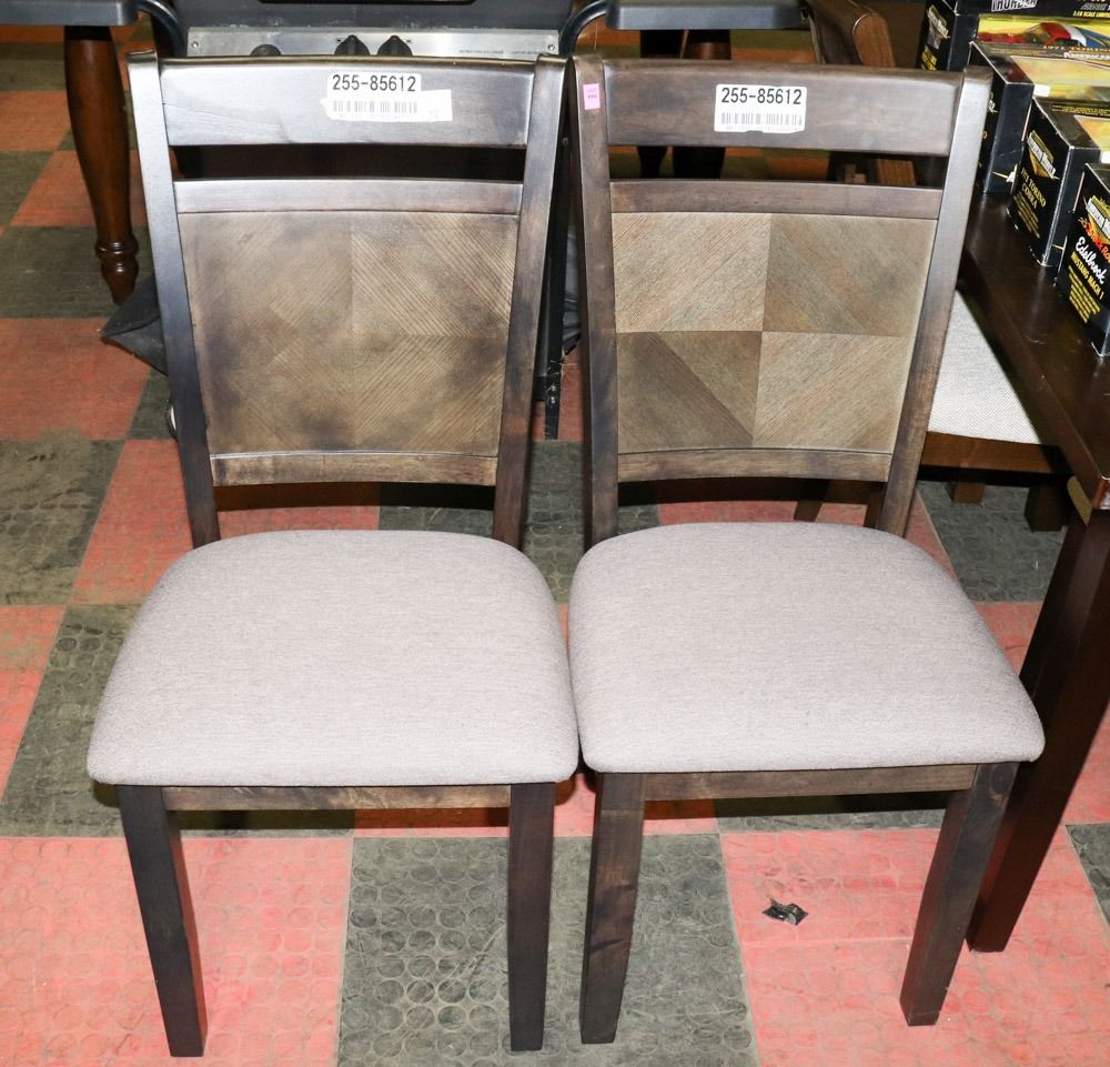 PAIR OF WOOD AND FABRIC SIDECHAIRS (36 X54 X37 ).