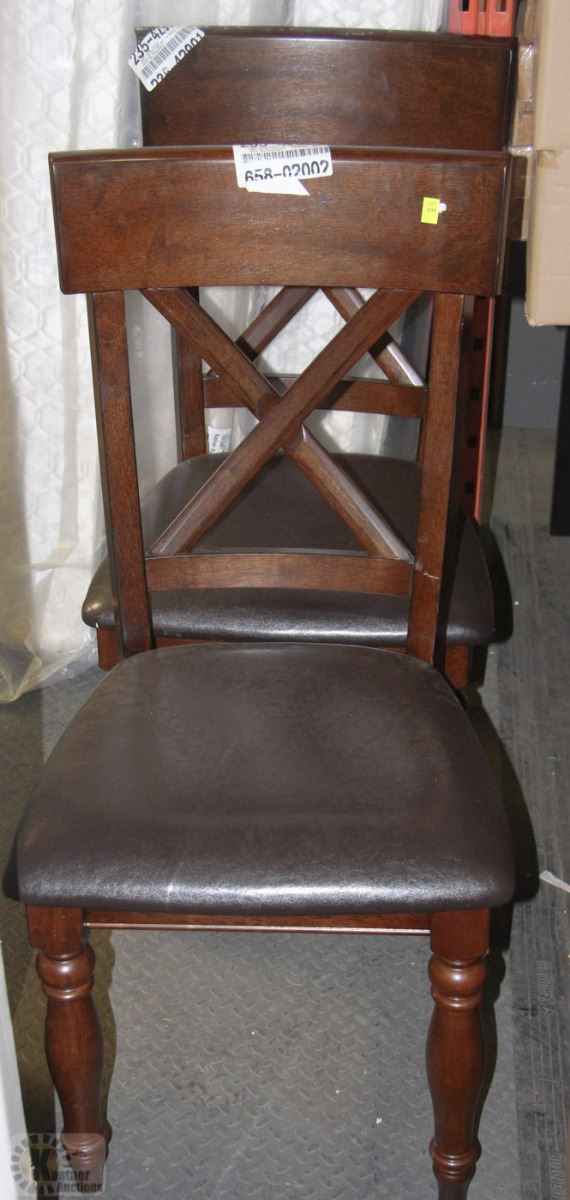 PAIR OF WOOD AND LEATHERETTE XBACK SIDECHAIRS