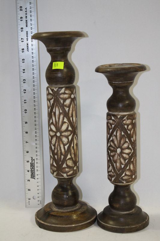 PAIR OF WOOD CARVED CANDLE HOLDERS ( CRACKED )