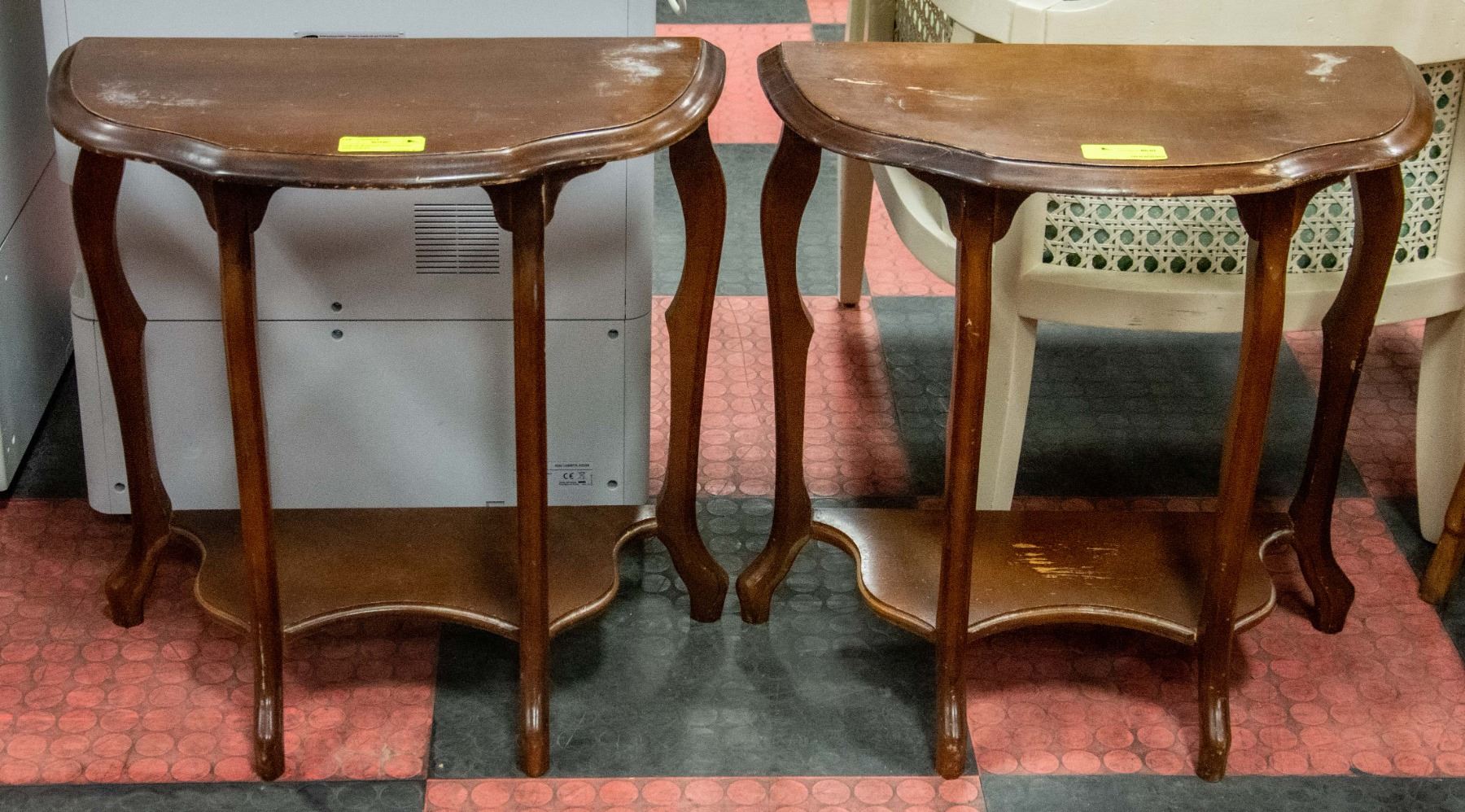 PAIR OF WOODEN "HALF MOON" SIDE TABLES