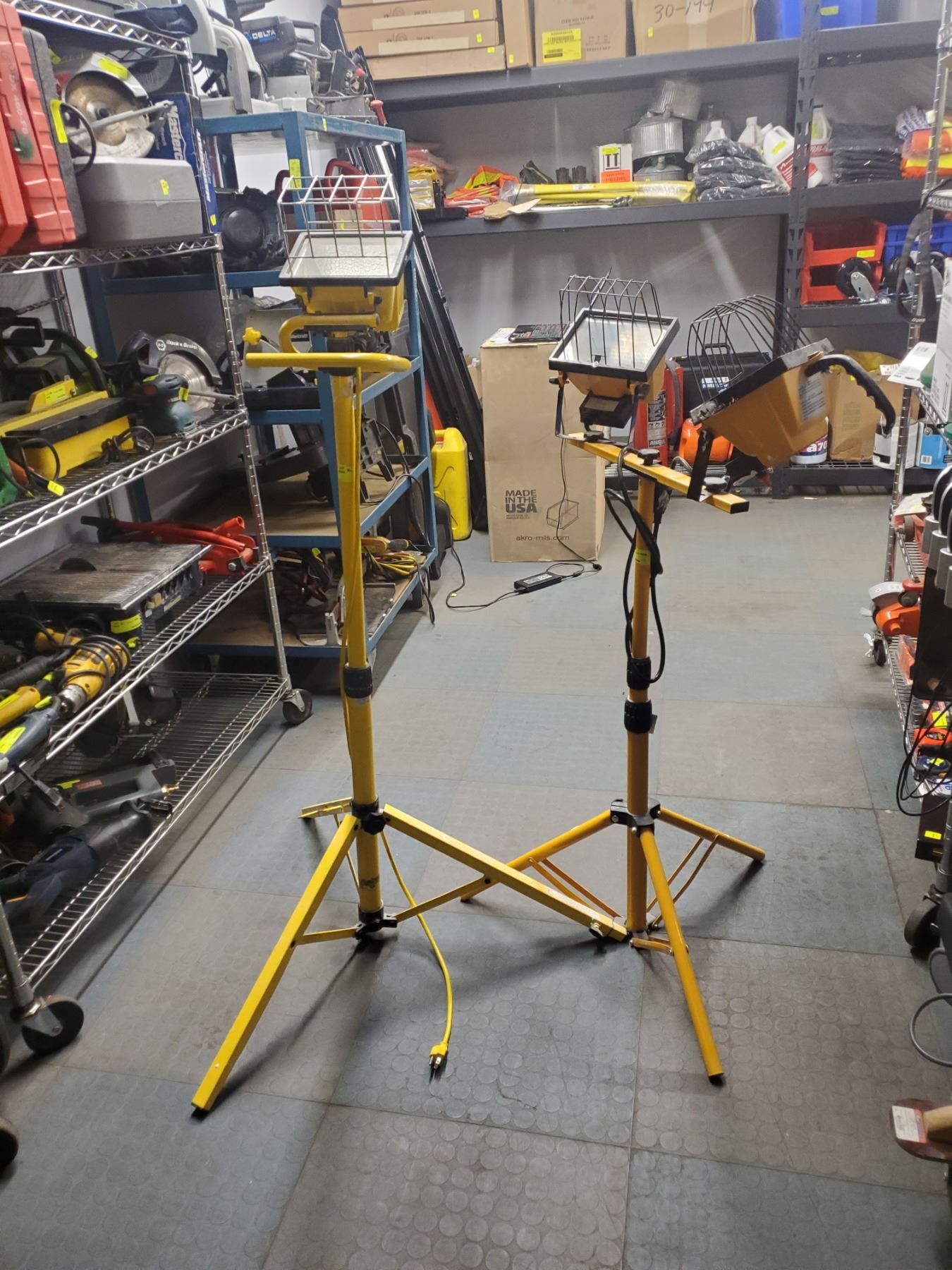 ONE SINGLE HEAD, ONE DOUBLE HEAD. SINGLE HEAD SPECS, MODEL# l-100, 500W MAX, TYPE "J" BULBS. DOUBLE HEAD SPECS, AC ONLY, 120V, 60HZ, 500W T-3 HALOGEN BULBS
