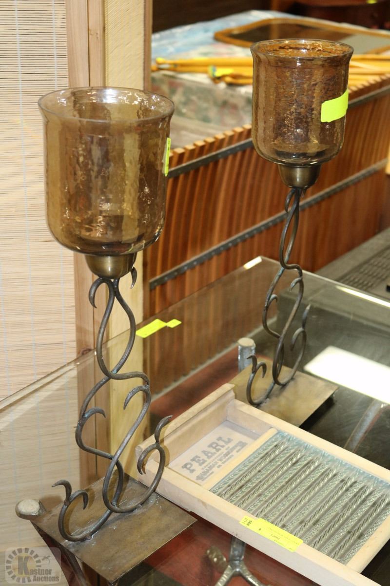 PAIR OF WROUGHT IRON BASE CANDLE HOLDERS