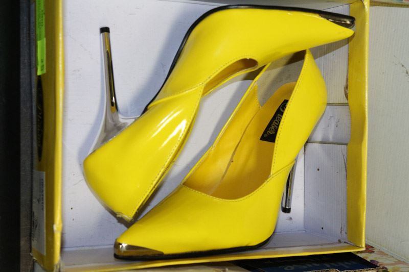 PAIR OF YELLOW "PLEASER" STEEL HIGH HEELED SHOES
