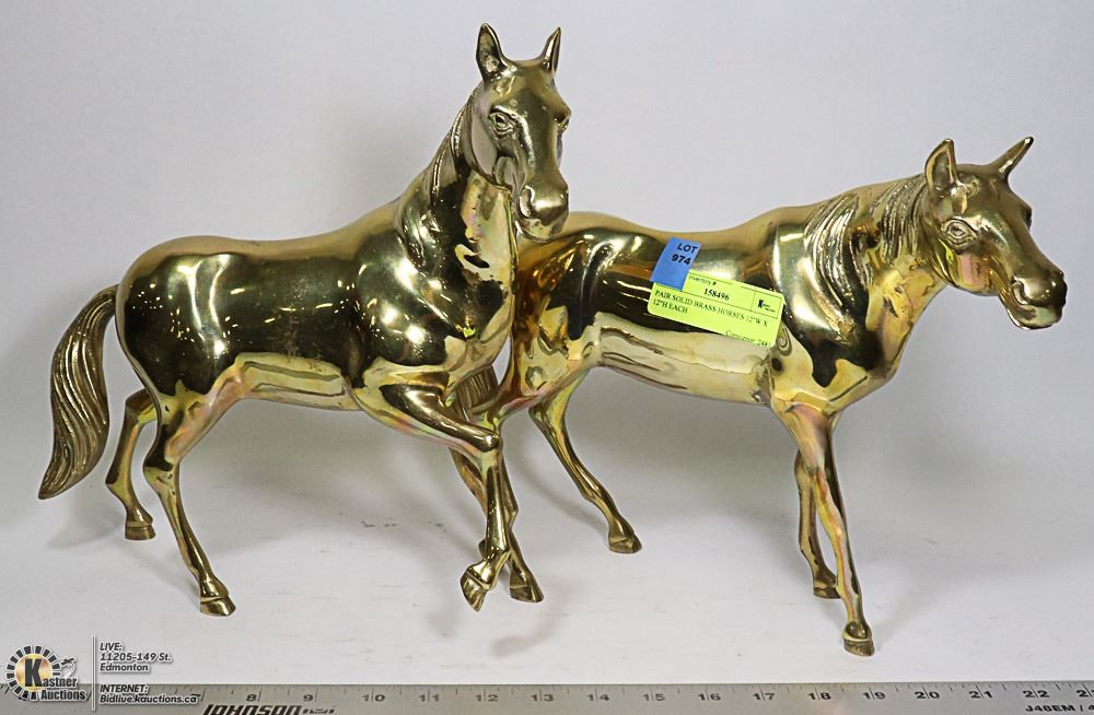 PAIR SOLID BRASS HORSES 12"W X 12"H EACH