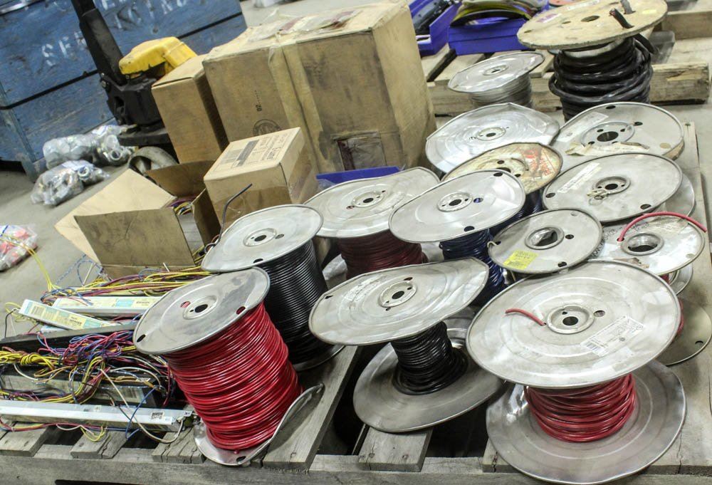 PALLET OF 15 ASSORTED SPOOLS OF WIRE & LIGHTING