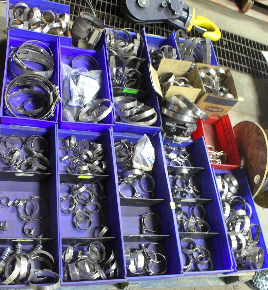 PALLET OF ASSORTED SIZED HOSE/ PIPE CLAMPS, ETC.